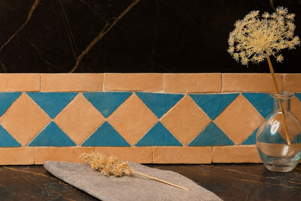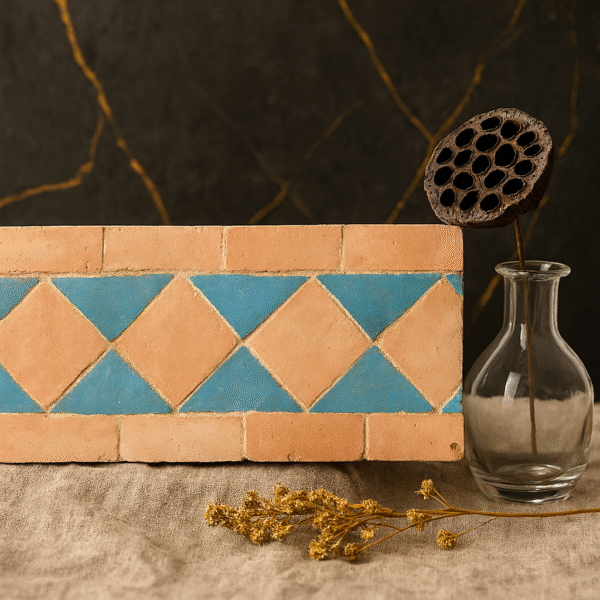 Zellij tiles are made from high-quality clay, coated with natural glazes, and finished with traditional Moroccan craftsmanship techniques.