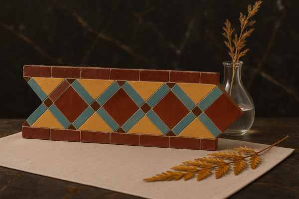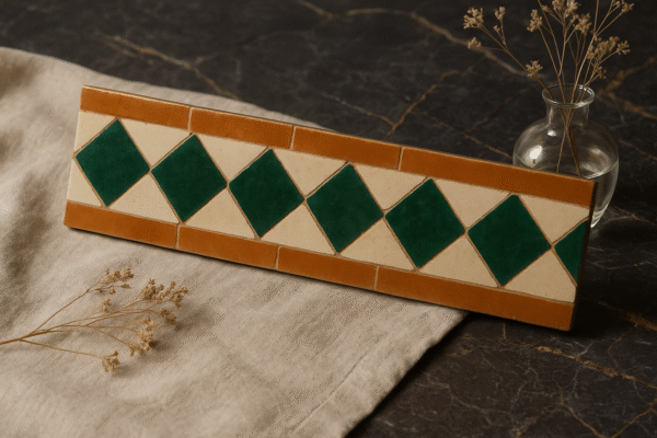 Moroccan Zellij tiles are entirely handcrafted in Fès using centuries-old techniques. Each piece is hand-cut and arranged into intricate geometric patterns, offering unmatched authenticity and artistic value.