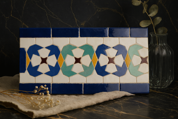 Zellij tiles are made from high-quality clay, coated with natural glazes, and finished with traditional Moroccan craftsmanship techniques.