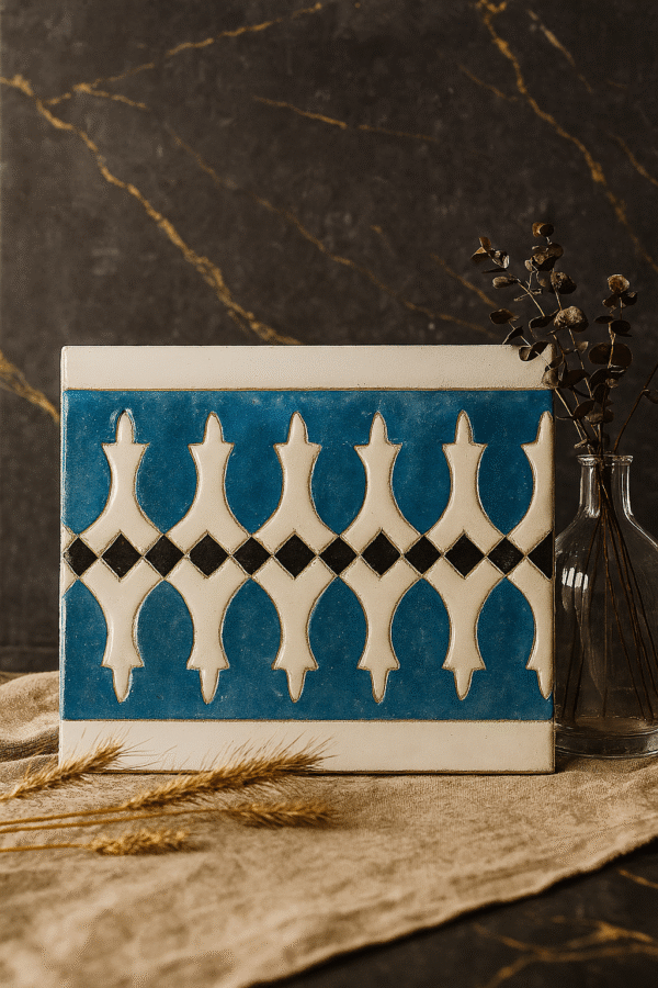 Moroccan Zellij tiles are entirely handcrafted in Fès using centuries-old techniques. Each piece is hand-cut and arranged into intricate geometric patterns, offering unmatched authenticity and artistic value.