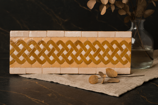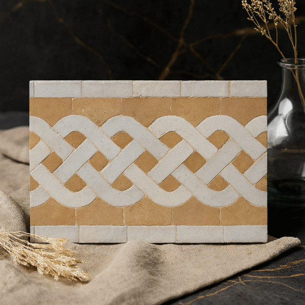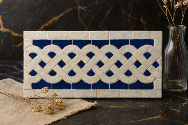 Moroccan Zellij tiles are entirely handcrafted in Fès using centuries-old techniques. Each piece is hand-cut and arranged into intricate geometric patterns, offering unmatched authenticity and artistic value.
