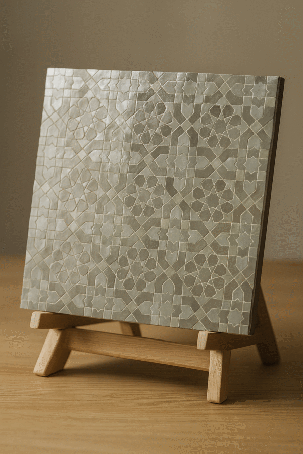 Moroccan Zellij tiles are entirely handcrafted in Fès using centuries-old techniques. Each piece is hand-cut and arranged into intricate geometric patterns, offering unmatched authenticity and artistic value.