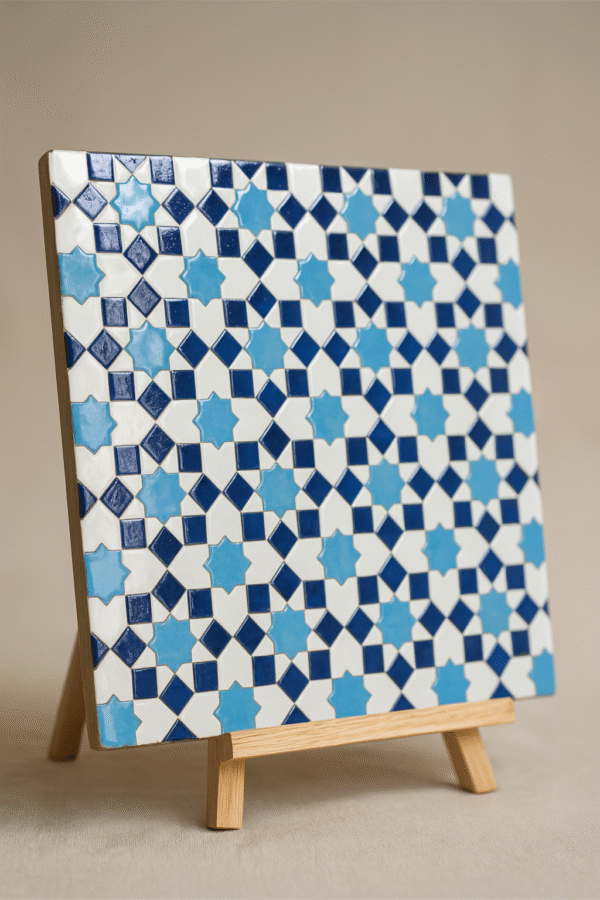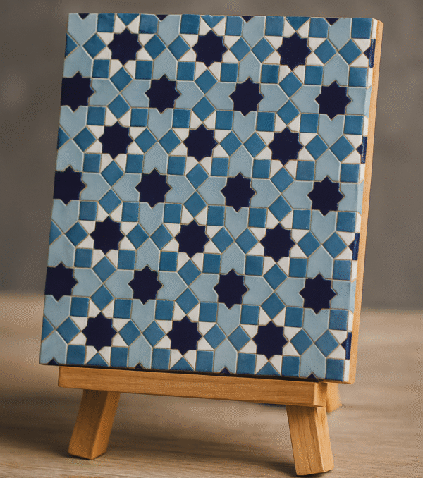 Moroccan Zellij tiles are entirely handcrafted in Fès using centuries-old techniques. Each piece is hand-cut and arranged into intricate geometric patterns, offering unmatched authenticity and artistic value.
