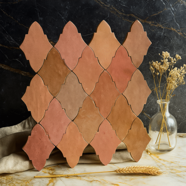 Zellij tiles are made from high-quality clay, coated with natural glazes, and finished with traditional Moroccan craftsmanship techniques.