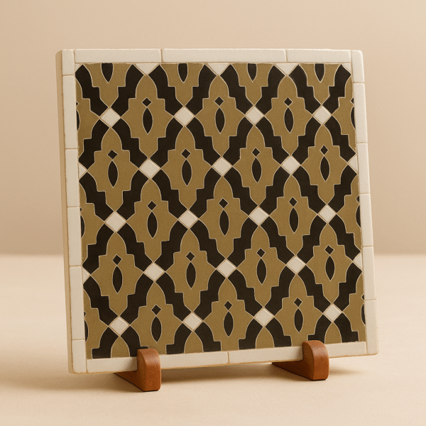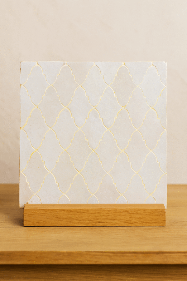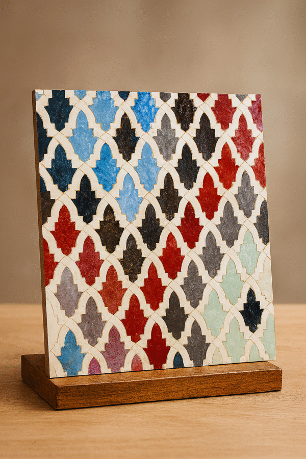 Moroccan Zellij tiles are entirely handcrafted in Fès using centuries-old techniques. Each piece is hand-cut and arranged into intricate geometric patterns, offering unmatched authenticity and artistic value.